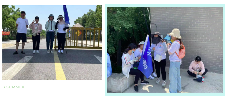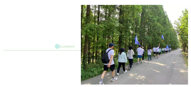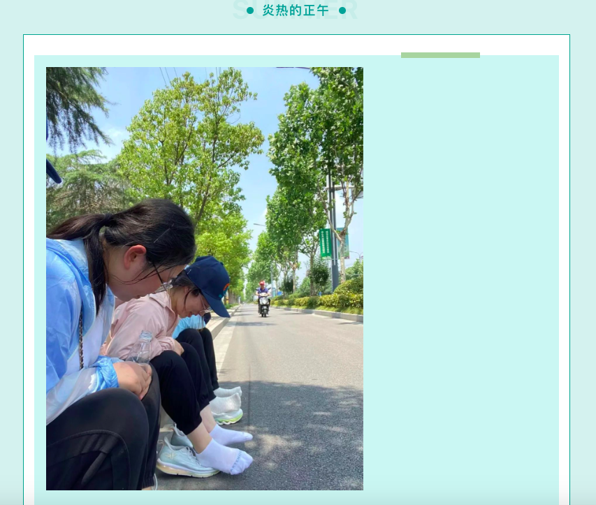 十點(diǎn)以后的天熱得好像要化開來,大家逐漸精疲力盡,汗水夾雜著灰塵沿著臉頰不停地滑下來,秉持著不拋棄、不放棄的原則,身體不適的伙伴被安排到補(bǔ)給車上休息,剩余十余名伙伴一路前行,配合著彼此的腳步,終于在12點(diǎn)之前完成本次15公里的徒步。